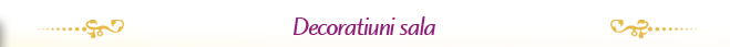 de rafinament si o personalizare a evenimentului dumneavoastra, Top Marriage va va realiza un decor deosebit si va transpune intr-o lume feerica. Pe langa aranjamentele cu baloane si flori, decorul meselor si scaunelor intregesc atmosfera festiva, pentru acesta va oferim huse pentru scune, fete de masa, fuste de masa esarfe si naproane din diverse materiale, satin, tafta si chiar brocart intr-o gama variata de culori. |